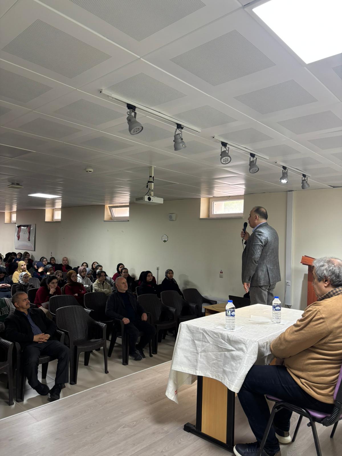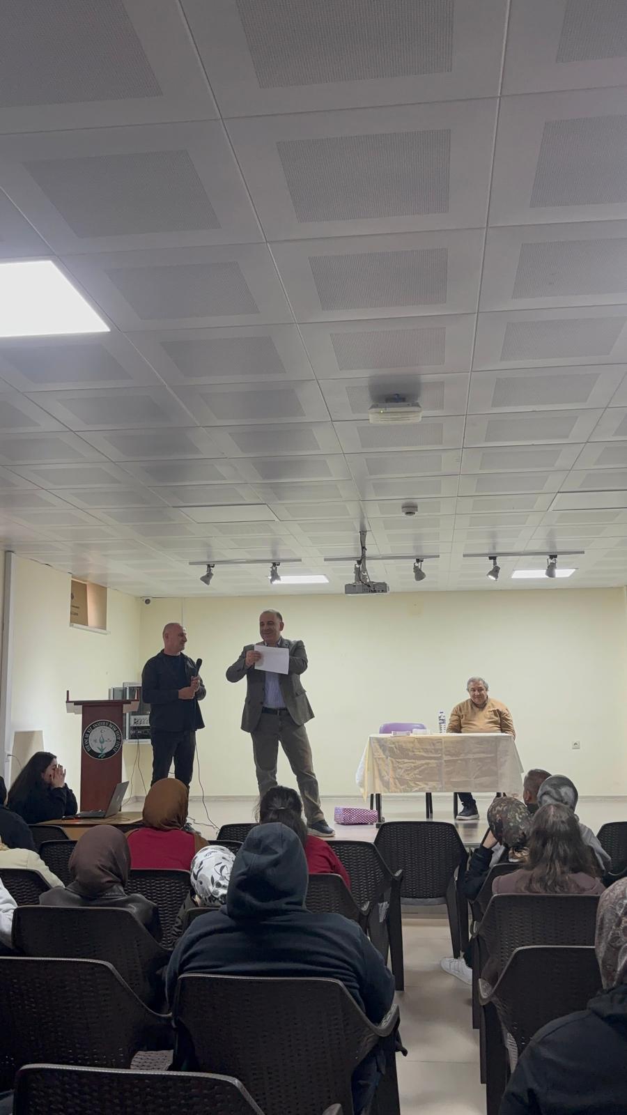 Fakültemiz Matematik Eğitimi Ana Bilim Dalı öğretim üyesi ve aynı zamanda Dekan Yardımcımız Prof.Dr. Hasan Hüseyin AKSU ve Eğitim Bilimleri Bölümü öğretim üyelerinden Prof. Dr. Levent YAYCI, Bulancak İmam-Hatip Ortaokulunda 14 Nisan 2026 Salı günü düzenlenen seminerlere konuşmacı olarak katıldı. Prof.Dr. Hasan Hüseyin AKSU 'Matematik Nasıl Çalışılır?' ve Doç.Dr. Levent YAYCI 'Sınav Sürecinde İçsel Motivasyonu Geliştirmek' konulu seminlerler gerçkeleştirdiler.