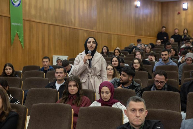 Giresun Üniversitesi Kalite Topluluğu tarafından düzenlenen “Rektör-Öğrenci Buluşması”, 9 Aralık 2025 Salı günü Şehir Ömer Halisdemir Konferans Salonu’nda yoğun bir katılımla gerçekleştirildi. Bilim ve teknolojinin belirleyici gücüne ve gençlerin ülkenin geleceğindeki rolüne dikkat çeken Rektör Prof. Dr. Yılmaz Can, “Bilimi ve teknolojiyi üreten ülkelerin dünyaya yön verdiğini, bu nedenle iyi eğitimli ve donanımlı gençler yetiştirmenin büyük önem taşıdığını” vurgulamıştır. Üniversitenin uluslararasılaşma stratejisi kapsamında Özbekistan Semerkant Devlet Pedagoji Üniversitesi ile imzalanan akademisyen ve öğrenci değişim protokolü hakkında bilgilendirme yapılmış, yeni iş birlikleri için çalışmaların sürdüğü belirtilmiştir. Ayrıca Güre Yerleşkesi’nin görünürlüğünü artıracak anıtsal giriş kapısı projesi ve yerleşke arazisine ilişkin yürütülen idari ve hukuki süreçler şeffaflıkla paylaşılmıştır. “Üniversite Giresun’undur, halkındır.” anlayışıyla kurumun geleceğine sahip çıkılması gerektiği ifade edilmiştir. Etkinlikte Rektör Prof. Dr. Yılmaz Can’ın yanı sıra Rektör Yardımcıları Prof. Dr. Güven Özdem ve Prof. Dr. Emel Uzunoğlu, Rektör Başdanışmanı Prof. Dr. Mustafa Şanal, Rektör Danışmanları Prof. Dr. Eren Baş ve Doç. Dr. Seda Nur Atasoy ile Genel Sekreter Ahmet Tevfik Korkmaz hazır bulunmuş; daire başkanları ve şube müdürlerinin de katılımıyla öğrencilerin soruları yanıtlanmıştır.